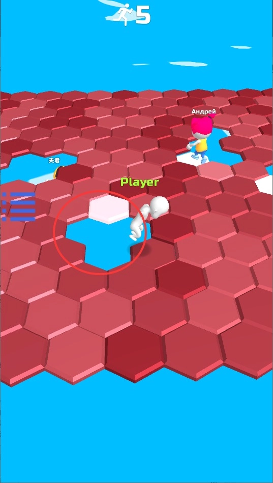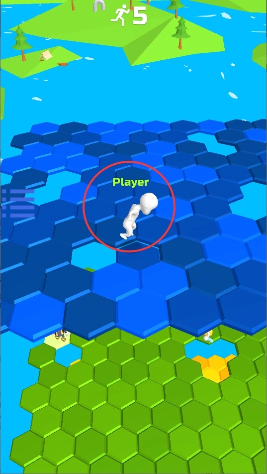 2、通过手指滑动控制角色在平台上移动,注意避开正在消失的地板区域,及时跳跃到安全位置继续前进。