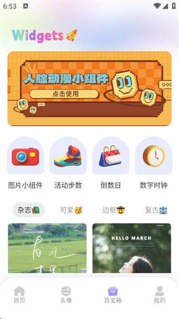 多种多样的小组件,拥有图片小组件、运动步数、倒数日、数字时钟等功能,能够满足您对桌面设计的日常所需。