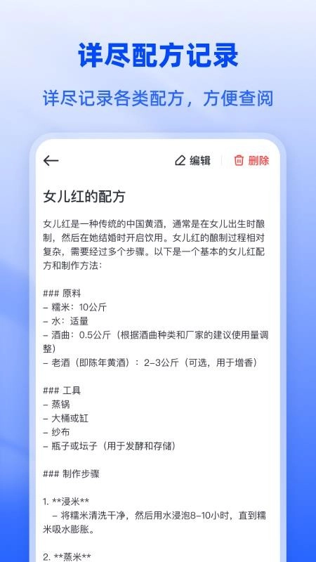软件提供了酿酒配方的笔记记录,用户可以轻松记录配方实验结果,实时保存下来。