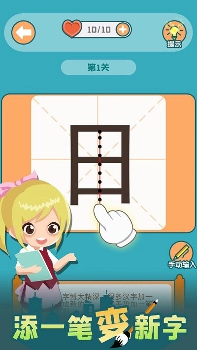 添一笔成新字游戏,是一款充满趣味且兼具教育意义的汉字解谜类游戏。在游戏里,玩家只需给已有的汉字添加笔画,就能创造出全新的汉字。该游戏巧妙地把传统文化和现代玩法融合在一起,让玩家在轻松愉悦的氛围中,提升对汉字的认知能力。无论什么年龄段的玩家,都能通过这款游戏,感受汉字神奇的演变过程。