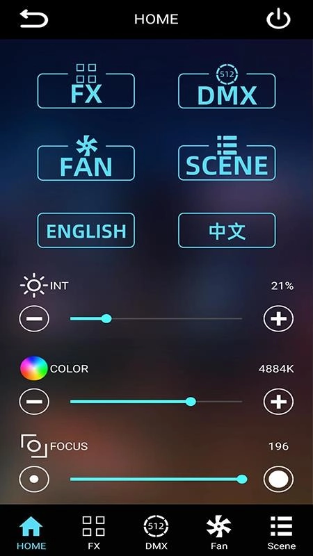 2、在首页即可详情来接各个灯光参数的数值,方便能针对性调整;