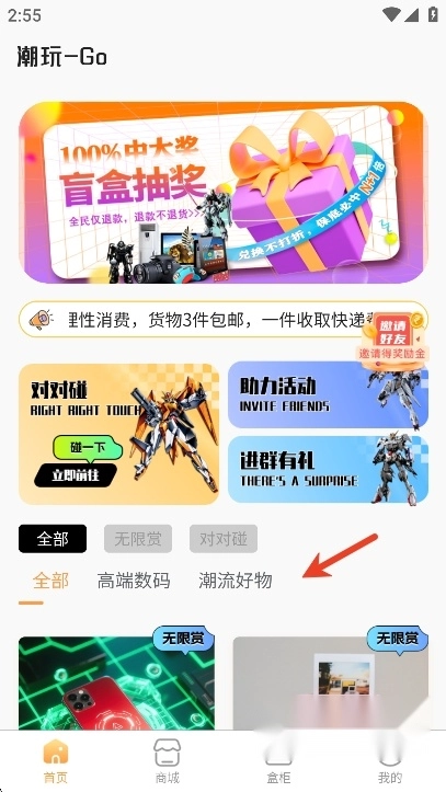 开启后,用户能够挑选自己心仪类型的商品,涵盖高端数码产品以及潮流商品。