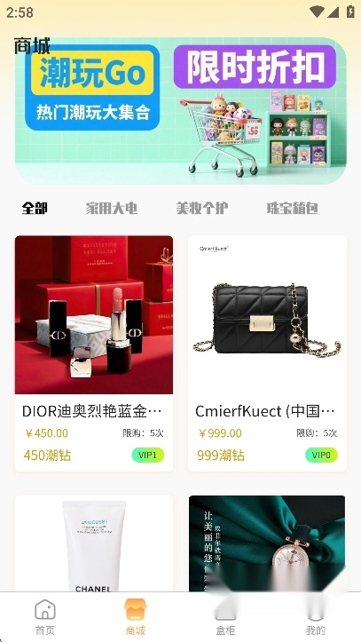 多元购物形式,趣味性强:融合盲盒抽赏、超值福袋、特价购买等多种购物形式,尤其是盲盒抽赏的概率性设计,增加了购物的惊喜感和趣味性,贴合潮玩收藏的娱乐属性。