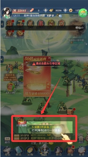 2、前期根据指引点击下方的任务完成就可以了。