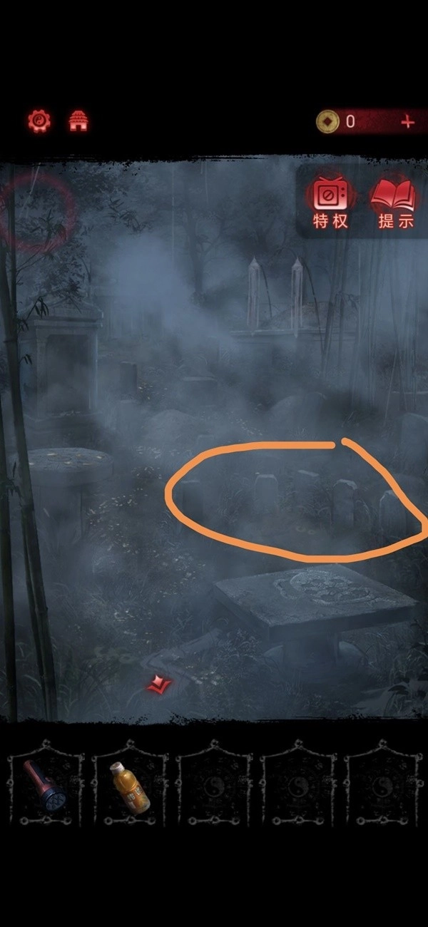 2、坟场石碑解密:用手电照亮左侧石碑,记录符号与天干(如丁丑年+矛头、丙子年+花朵);观察石桌机关,按“矛头→丁丑、花朵→丙子”摆放石块。