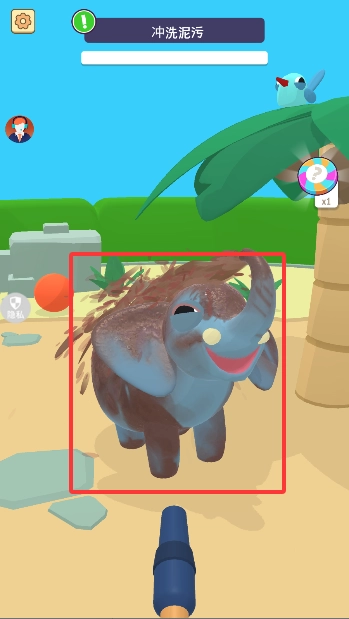 1. 当进入游戏之后,我们需要给大象冲洗身上的泥污。