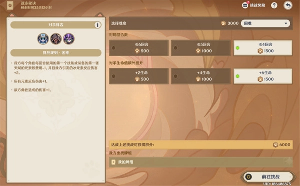 在原神七圣召唤的“巧策进斗”活动里,速冻秘诀的困难难度设定为玩家需在四回合内打败敌方,同时敌方生命值会提高6点。本攻略选用莱依拉 + 香菱 + 莱欧斯利组成无手牌阵容,凭借精确的元素附着以及技能释放次序,达成稳定的四回合通关。此打法依靠角色的固有技能联动,无需额外卡牌辅助,很适合那些资源有限或者追求高效通关的玩家。