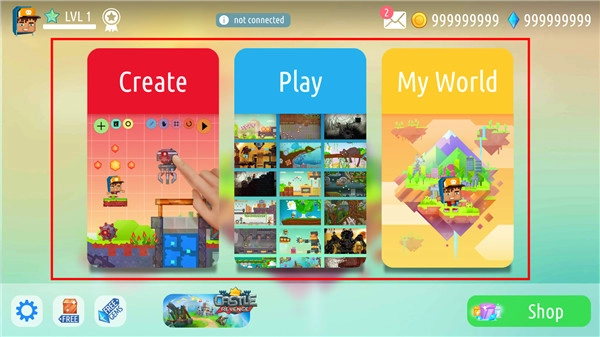 2、三大模式:任务模式,生存模式,网络对战模式。