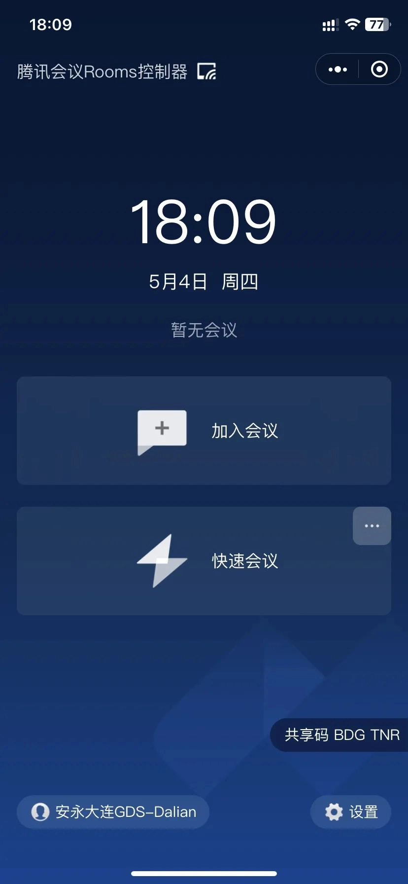 腾讯会议Rooms控制器配对码在哪里输入