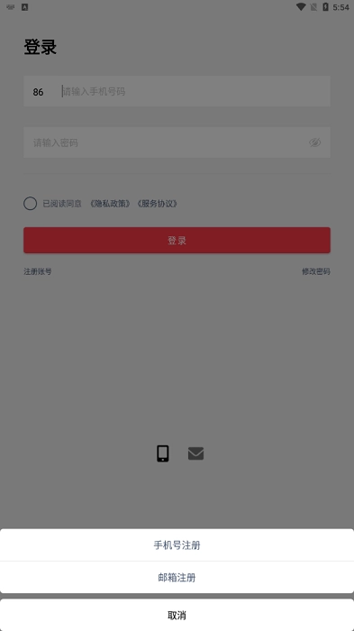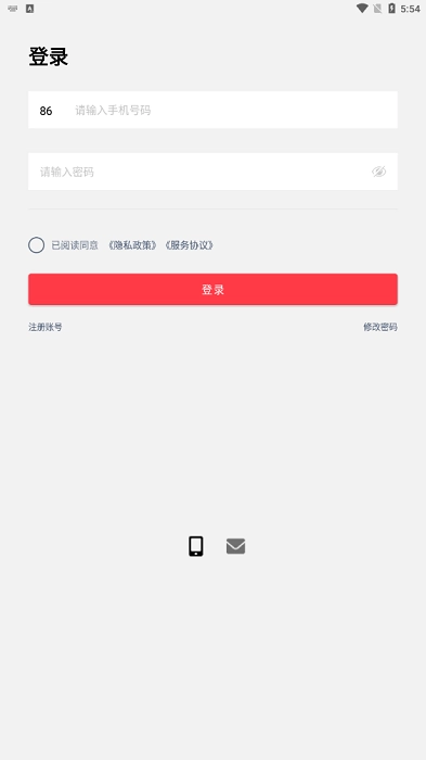 1使用该应用时,需先登录账号。若您已有账号,直接输入账号与密码,点击“登录”即可开始使用;若尚无账号,可点击红色登录按钮左下方的蓝色小字“注册账号”进行注册。