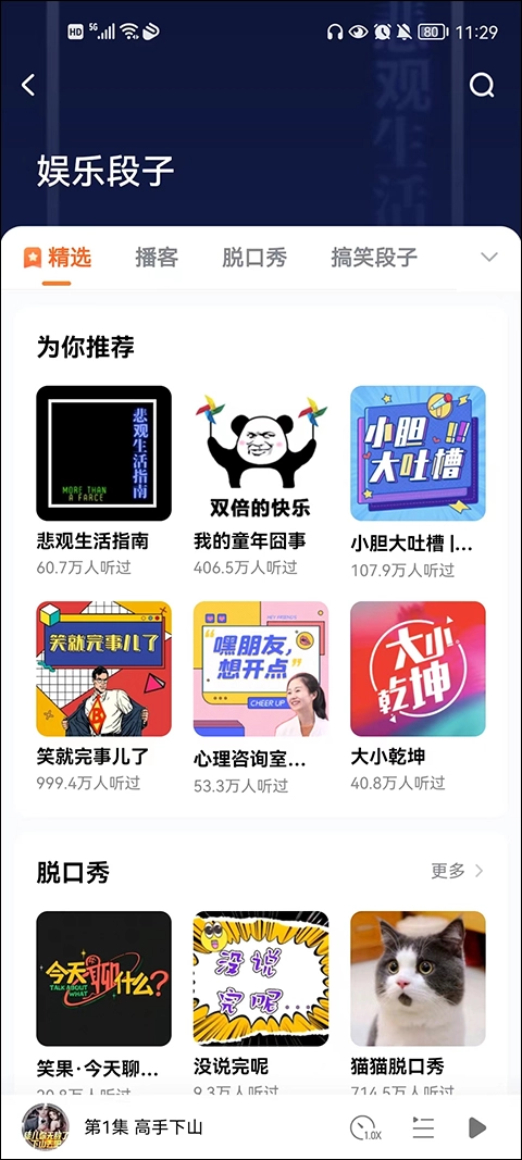 7、如果你觉得听书枯燥,还可以听听娱乐段子以及脱口秀等等。
