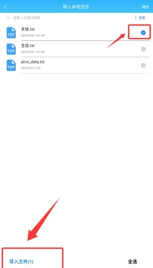 2、进入后选择要导入的书籍,点击导入文件。