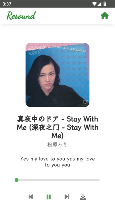 Resound是一款由独立开发者打造的免费音乐软件,极为轻巧,安装包仅300多KB,不会占用过多设备空间。它支持音乐搜索、在线播放,还能同步显示完整歌词,满足听歌的核心需求。其界面采用简洁的白绿配色CSS设计,视觉上清爽舒适,同时兼顾良好的适配性与丰富功能,让用户在轻巧的体验中享受便捷的听歌服务。