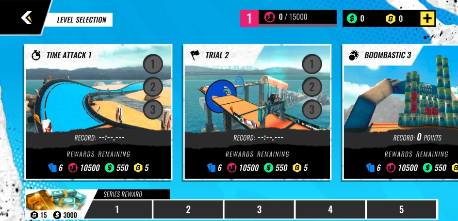 4、本游戏运用关卡挑战模式,玩家能够通过挑战获取星星与金币。在持续强化自身赛车的过程中,玩家还可参与世界排名赛,向全体玩家发起挑战,角逐排行榜名次。