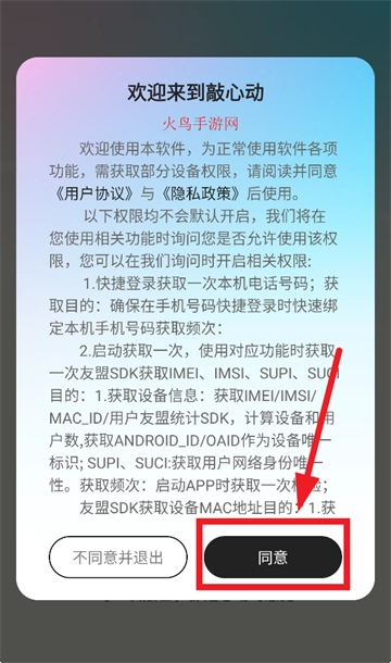 安装并打开敲心动,在欢迎欢迎来到敲心动提示界面点击同意