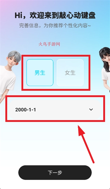 选择自己需要的人设,点击进入进入敲心动键盘