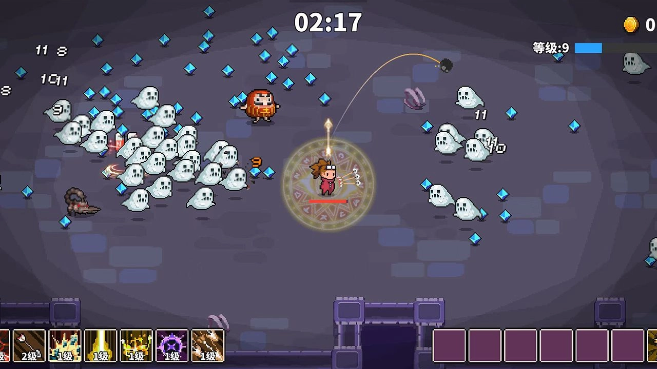 2、精致可爱的像素画风加上横版的界面,这款割草游戏玩起来也是无比畅快的呢。