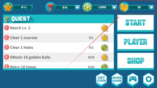 2、在界面右上角查看当前金币数量,用于解锁特殊功能球杆。