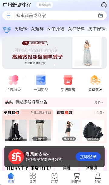 纺支宝是常熟纺支宝科技有限公司旗下专业的B2B服装批发软件,提供服装批发货源及一件代发服务。它集商家、服装市场、外贸网批等多种功能于一体,整合各大服装批发市场资源,将各市场、各品牌的女装、男装、童装货源同步至网上批发平台,吸引了数万个商家入驻,为广大服装零售商提供一站式服务,立志成为专业的服装批发平台。