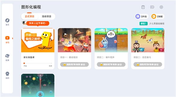 5、当解锁了项目学习课程后,每天可开放学习相应视频内容