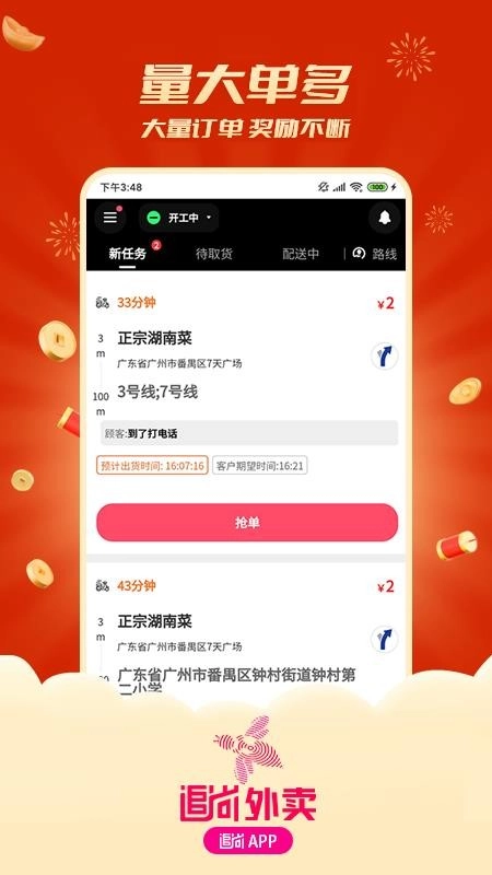 3、筛选优质的订单就可实时抢单,让你轻松接单配送。