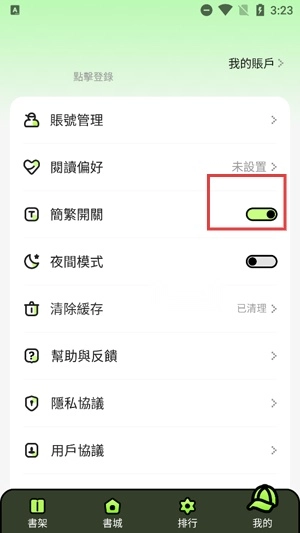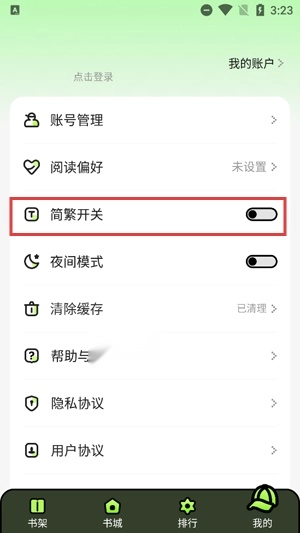 在我的界面找到简繁开关,点击。