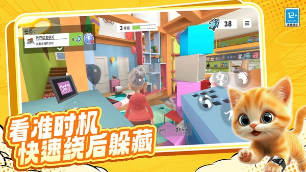 1. 通过简单的操作控制猫咪奔跑、跳跃和攀爬,探索房屋、花园等不同场景。