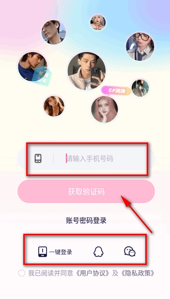 输入手机号码,获取验证码就可以注册登录,也可使用qq、微信一键登录。