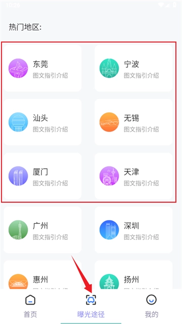5、除此之外,软件内还设有曝光途径指引相关介绍,其覆盖范围涵盖众多地市,具体情况如图所示。