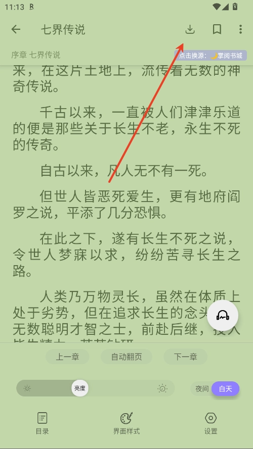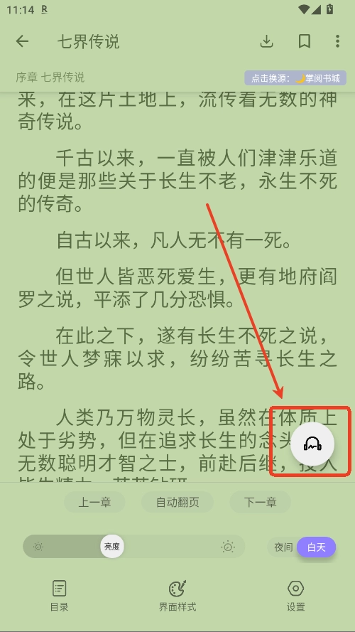 2.点击右下的耳机按钮,进入听书界面。