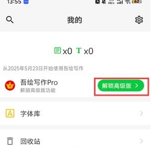 打开你的吾绘写作,在个人中心点击升级Pro。