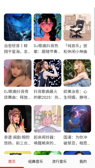 流行、经典、网红、古风、DJ、怀旧金曲、摇滚、电音、说唱、民谣等所有歌曲包罗万有,让你不再歌荒!