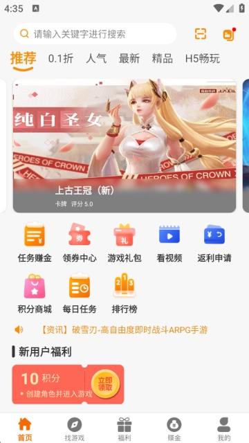 进入后,便能瞧见各类分类与游戏。