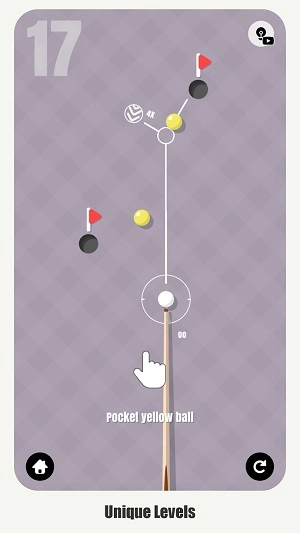 3. 征服关卡:一次将所有球打入袋内,完成关卡并进入下一个挑战。