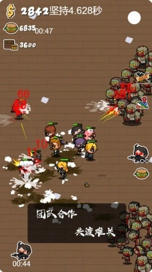 军团大战僵尸是一款玩法相当热血的大型僵尸射击冒险游戏,整体风格都是非常简约,玩起来很容易上手,开局一根棍,武器全靠捡,解救那些处于危险中的同伴,带领大家一起活下去,等待救援的到来。游戏中你需要收集食物,各种武器,集合各种队友在这个世界进行探索和生存,你将带领一个军团来剿灭僵尸,多种关卡可自由挑战,每一种关卡选择的也是不一样的地图,像有荒地、医院什么的,只需要消灭所有的丧尸即可完成任务。