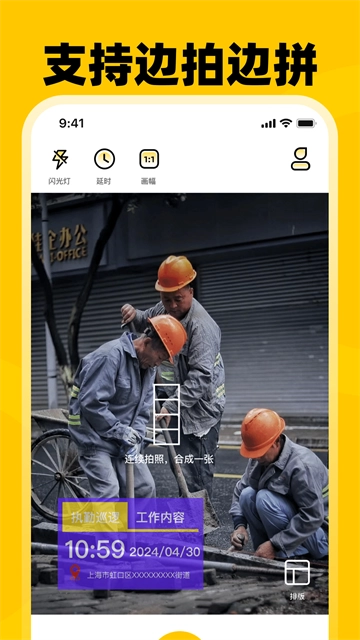 5、边拍边拼:支持使用软件进行边拍边拼,在拍摄水印图片过程中软件即可自动拼接不同图片;