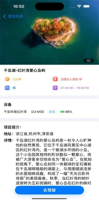 设备状态查看:在详情界面,用户能随时查看无人机的剩余电量、当前等待使用的人数,还能了解其收费标准、占用情况、营业时间以及天气对飞行的影响等信息,合理规划使用。