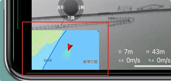 无人机到达安全区域,界面弹出虚拟摇杆控件后,用户即可接管无人机操控权,其操控以及功能与网页版相同。
