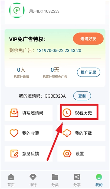 也可以在我的界面点击观看历史