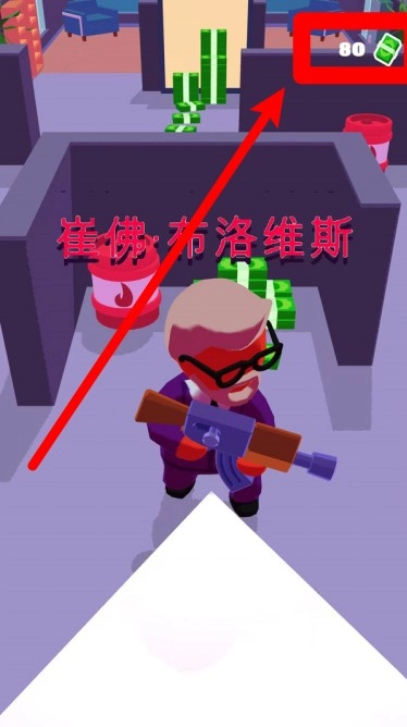 2.右上绿色钞票图标显示当前赏金,击倒守卫或拾取现金可累积资金用于升级装备。