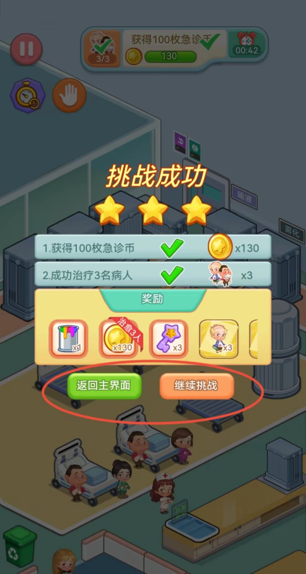 3、按顺序完成所有治疗环节后通关,完美达成目标可获得三星评价及金币等游戏奖励。