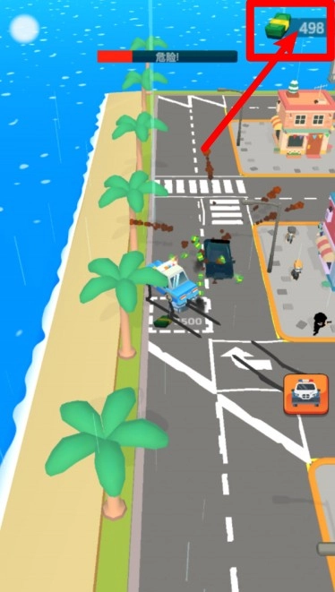 2.危险值监控条:顶部红蓝条为当前危险值,敌人数量或混乱度越高危险值上升,需尽快出警处理避免城市失控。