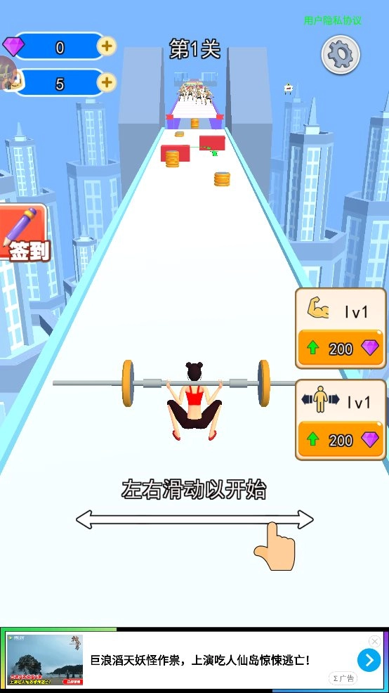 4、在游戏中我们随着赛道一直不停的奔跑,途中能够捡到更多的杠铃。
