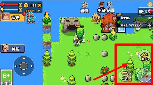 2.荒岛活动操作提示:通过右下角按钮可进入翻滚与互动模式,应对不同资源与物件探索需求。