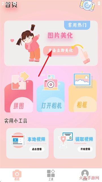 1、打开氧气相机,点击立即美化按钮;