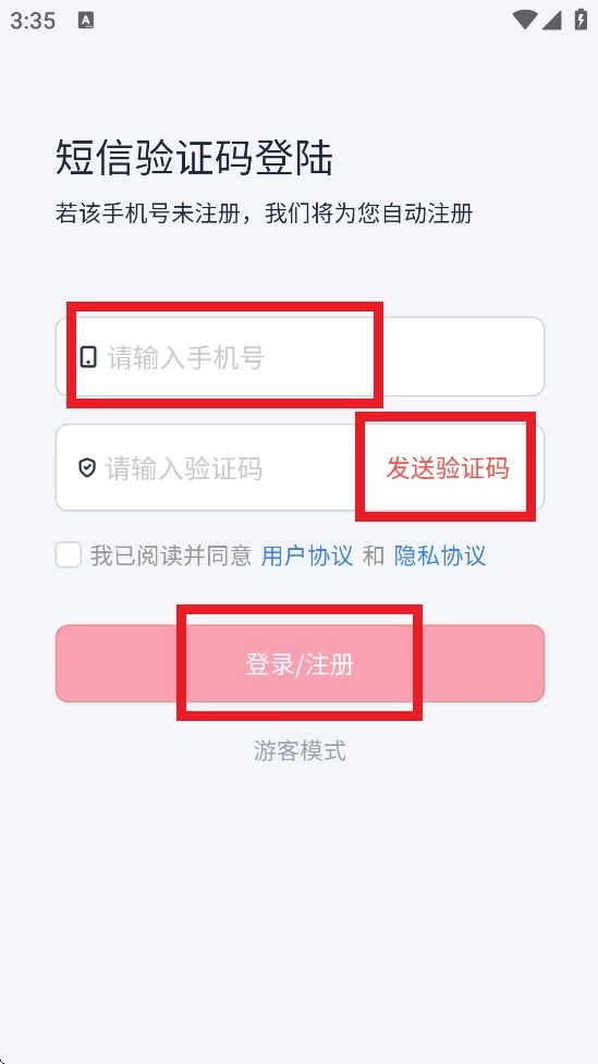 2、输入手机号,获取验证码进行登录。