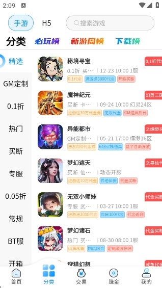 4、您想买账号还可以再交易板块查看。