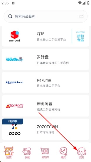 先安装乐酷淘,安装完成后打开它。进入乐酷淘首页,随后点击“我的”选项。