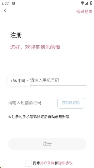 输入手机号,验证码,勾选同意用户条款和隐私协议,点击注册即可。