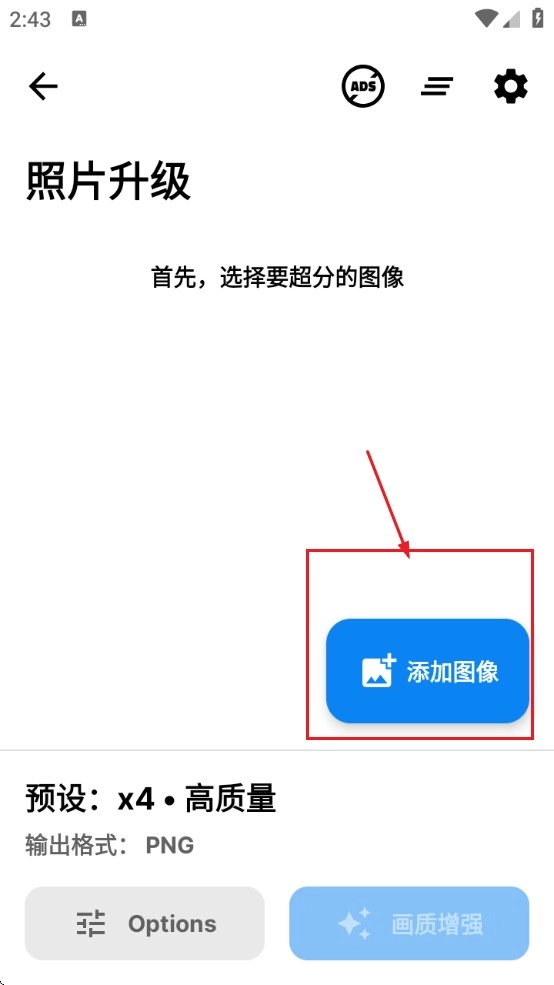 1. 开启你的SuperImage,于主页点击右上角的设置选项。